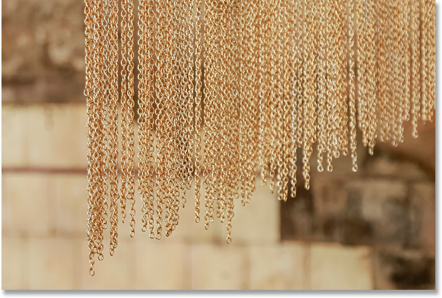 Uma interseção entre luz, forma e movimento. Elos de alumínio dourado. Dimensões variáveis